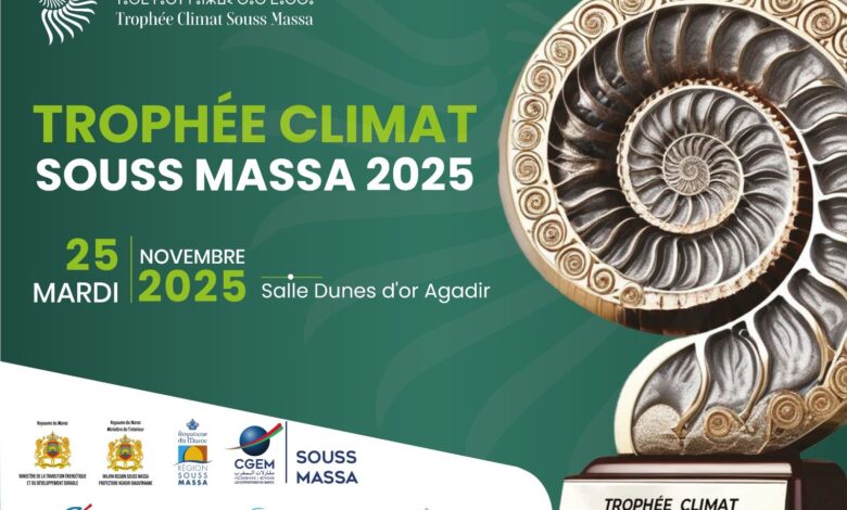 تحتضن مدينة أكادير فعاليات النسخة الأولى ل “جائزة سوس ماسة للمناخ 2025 ” ، التي تنظمها جهة سوس ماسة والاتحاد العام لمقاولات المغرب – فرع سوس ماسة بشراكة مع وزارة الانتقال الطاقي والتنمية المستدامة و الائتلاف الاقتصادي الجهوي وهي مبادرة تهدف إلى تكريم المقاولات والفاعلين الجهويين المتميزين بانخراط فعلي في حماية البيئة وتعزيز مبادئ التنمية المستدامة.وتُعدّ هذه التظاهرة لحظة بارزة للاعتراف بالمجهودات التي تبذلها المقاولات في الجهة من أجل إدراج الممارسات المستدامة في استراتيجياتها، والخفض من بصمتها الكربونية، والمساهمة في مسار الانتقال الطاقي. كما تعكس الدينامية الجهوية المتواصلة في مجال حماية البيئة ومواجهة التغير المناخي.نداء أكادير للمناخ – التزام جهوي ووطني من أجل البيئةيضع المغرب قضايا المناخ في صلب سياساته التنموية العمومية ، عبر تعزيز الحكامة المناخية وهيكلة مشاريع التكيف والتخفيف وتعبئة التمويلات الضرورية. وفي هذا الإطار، تبرز جهة سوس ماسة كفاعل محوري في تنزيل هذه الرؤية، من خلال تبني مبادرات مبتكرة ودعم الفاعلين الاقتصاديين والمؤسساتيين المنخرطين في برامج بيئية مسؤولة.وسيوقع المشاركون في هذا الحدث على ” نداء أكادير للمناخ ” والذي يهدف لتحلي عموم الأفراد و الجماعات بسلوك إيجابي تجاه البيئة مع إشراك القطاع الخاص و المؤسسات العمومية و الجماعات الترابية في تجسيد مبدأ التنمية المستدامة . “جائزة المناخ – سوس ماسة 2025”تروم هذه النسخة الأولى إلى: • تثمين المبادرات النموذجية للمقاولات والجماعات الترابية والهيئات المدنية والتعاونيات وحاملي المشاريع ذات الصلة بالتكيف مع التغير المناخي وتخفيف حدته. • الترويج للممارسات الجيدة والابتكارات في مجال حماية البيئة. • تشجيع تبادل الخبرات ونقل المعرفة بين الفاعلين الاقتصاديين والمؤسساتيين على المستوى الجهوي.سيشكل حفل تسليم الجوائز لحظة رمزية لإبراز التجارب المتميزة وإلهام مقاولات أخرى للانخراط في مسار الاستدامة. وستُسند الجوائز، وفق الفئات التالية: • جائزة الصناعة • جائزة المؤسسات والمقاولات العمومية • جائزة الجماعات الترابية • جائزة الفلاحة • جائزة قطاع الصيد البحري • جائزة السياحة • جائزة اللوجستيك • جائزة البحث والابتكار والتنمية • جائزة خاصةانخراط جماعي من أجل مستقبل مستدامتعكس هذه المبادرة تعبئة مشتركة للفاعلين الاقتصاديين والمؤسساتيين من أجل تعزيز الانتقال الطاقي، وتشجيع الممارسات البيئية المسؤولة، وتقوية الدينامية الجهوية الرامية إلى بناء نموذج تنموي قائم على الاستدامة والابتكار