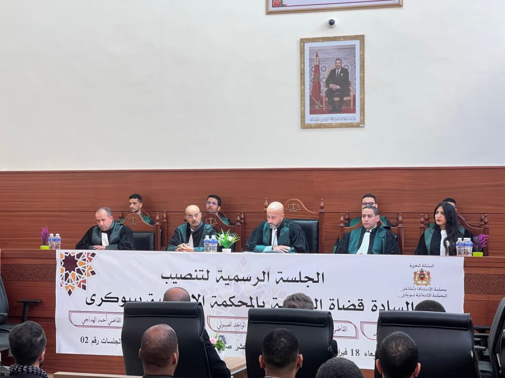 وقد جرت مراسم التنصيب بحضور السيد الرئيس الأول، والسيد الوكيل العام للملك، والسيد المدير الإقليمي لوزارة العدل، إلى جانب ممثل عن نقيب هيئة المحامين بأكادير، وممثل المفوضين القضائيين، فضلاً عن حضور وازن لمختلف مكونات أسرة العدالة من قضاة وموظفين ومهنيين، في مشهد يجسد روح التعاون والتكامل بين مختلف الفاعلين داخل المنظومة القضائية.